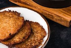 250/160 г • Драники, колбаска домашняя, грудинка, лук , соус сливочный