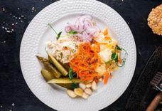 250 г • Морковь по-корейски, квашеная капуста, маринованные огурцы, лук маринованный, томаты